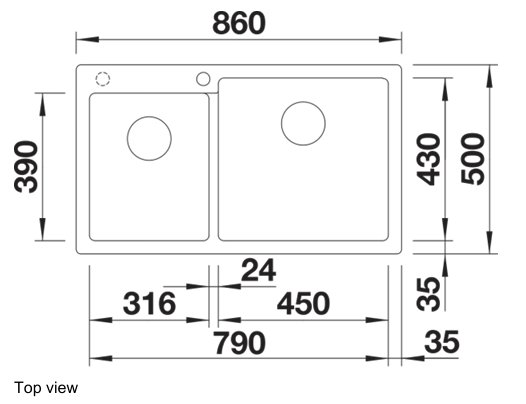 • Easy to clean, flowing transition from the sink's rim to the tap ledge